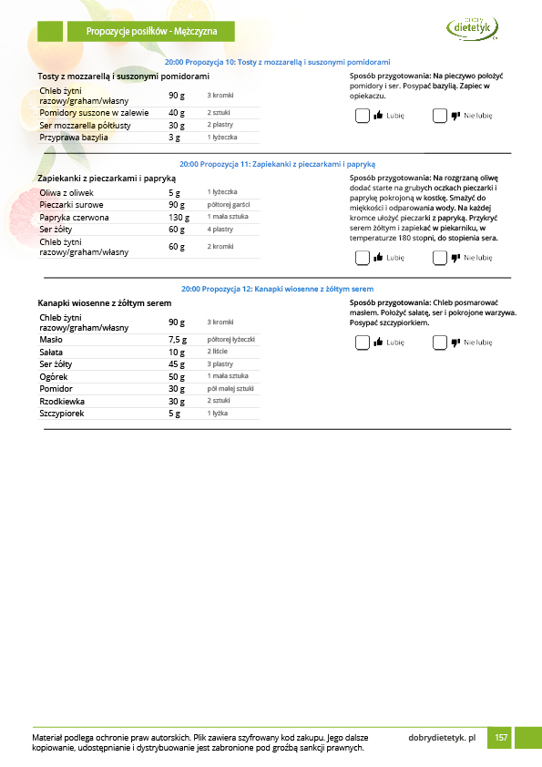 • w formie precyzyjnych jadłospisów wielodniowych (na każdy dzień miesiąca jest opracowany osobny jadłospis). Tutaj nie musisz zastanawiać się co zjeść każdego dnia, gdyż będziesz mieć dokładnie wszystko rozplanowane.