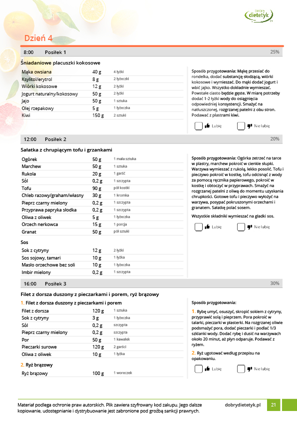 • Liczba posiłków w ciągu dnia: 4